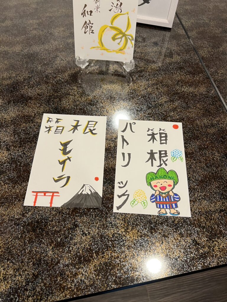 Use a brush pen to write or draw freely on a postcard — a relaxing way to capture your Hakone memories.